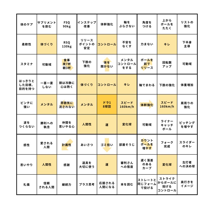 大谷選手が、高校生の時に作成したといわれているマンダラチャートはこちらです。