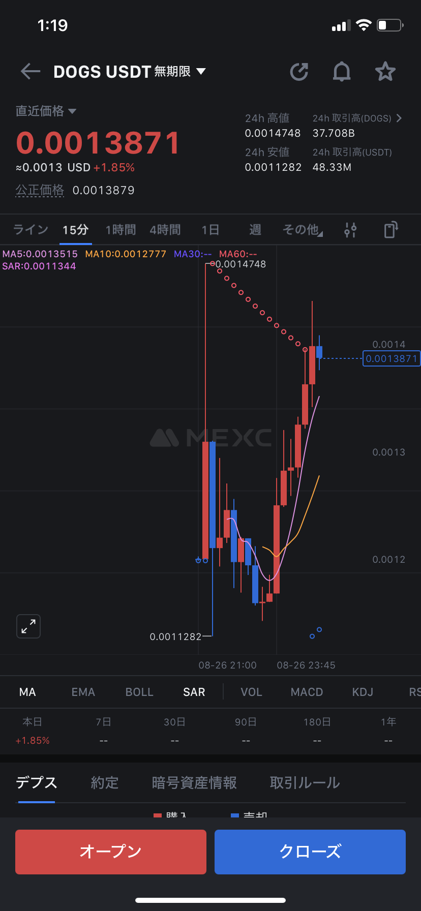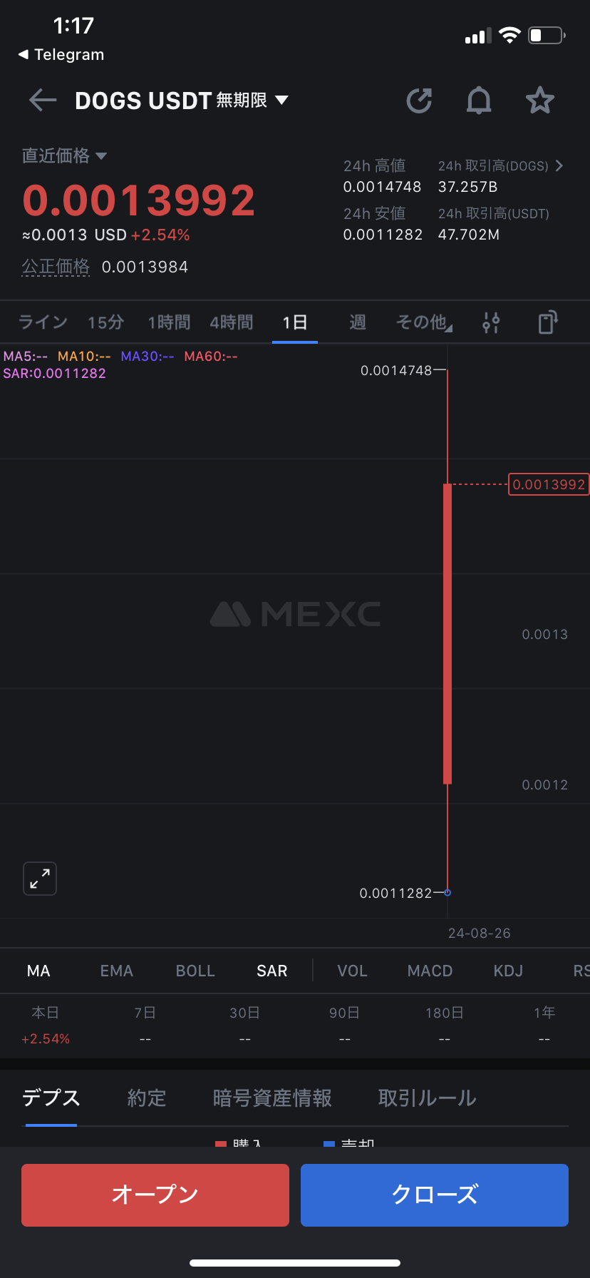 1日間隔のチャートですが、DOGSの記念的チャートをスクショに収められた気がしています。