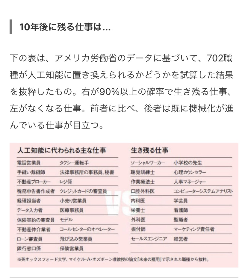 今日は、AIが発展して、なくなる職業などのテレビ番組をやっていたのか、