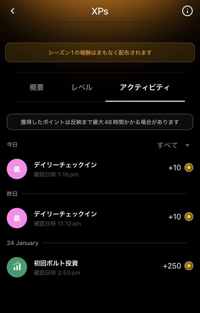 デイリーチェックインの方は、継続しているので、