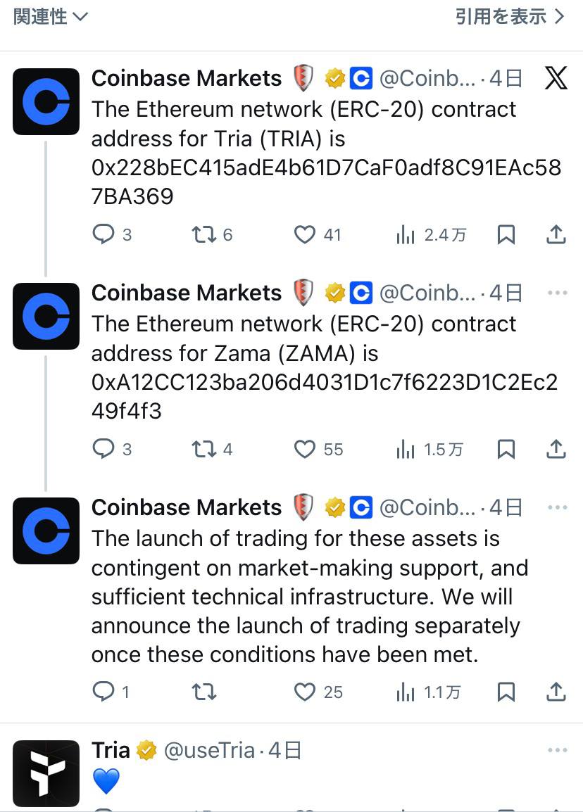コインベースの上のXでの投稿上にも、記載してありますが、