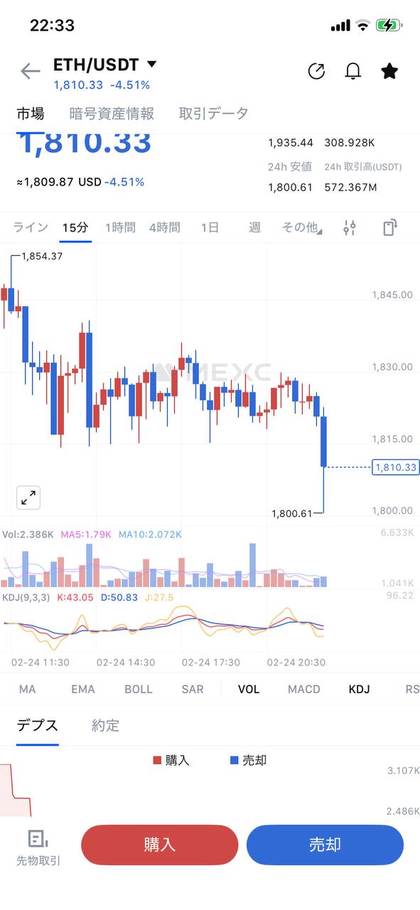 思っていたら、MEXCさんでアラームが鳴る。
