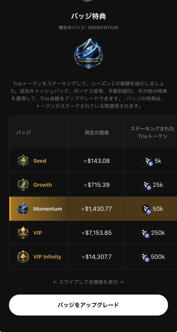 バッジ特典も色々あるのですが、TRIAを長期目線で、